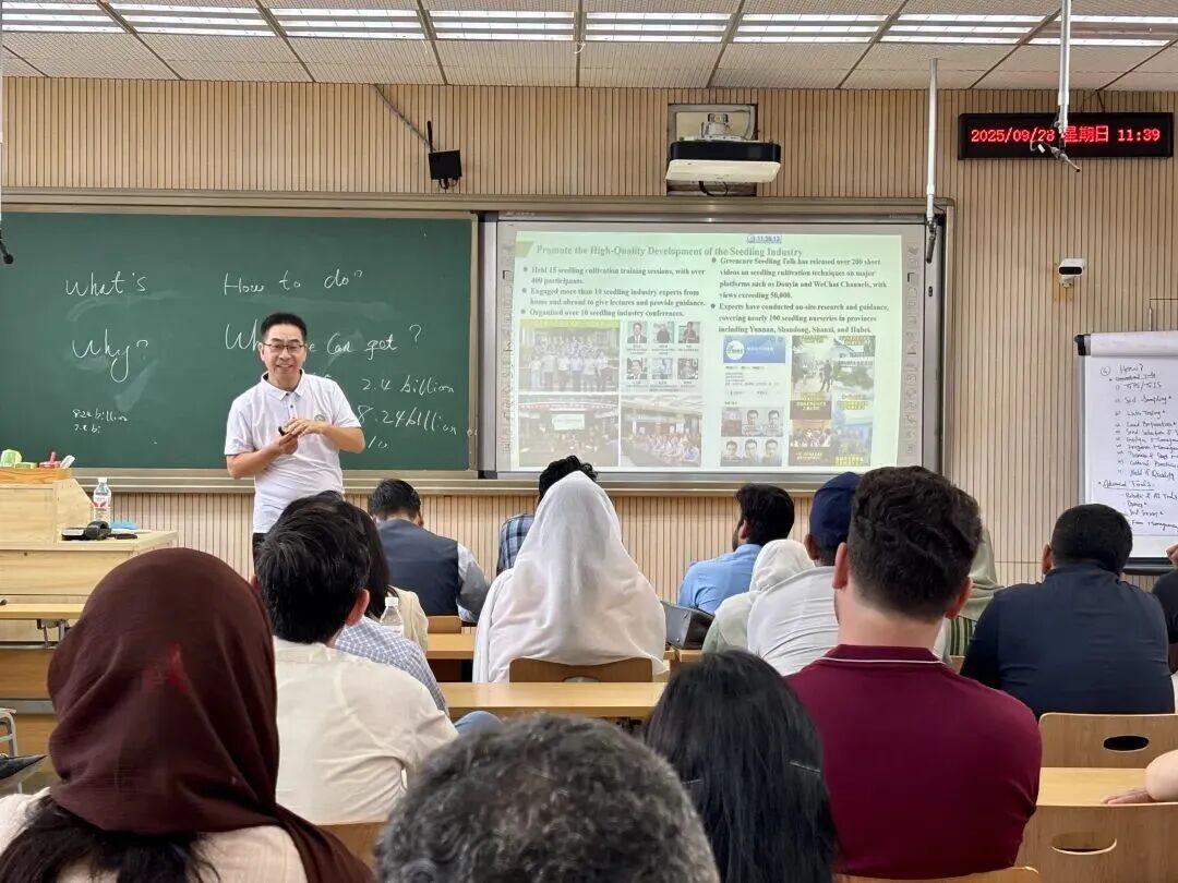 学术交流中,“育苗”技术成为开篇焦点。双方学者结合巴基斯坦当地气候条件与华中农大在育苗领域的技术积累,深入探讨了优质种苗培育的关键环节——从基质配比的精准调控,到病虫害绿色防控技术的应用,再到智能化育苗设备的适配性改造。郑勋领老师以研究院的实践案例为例,分享了如何通过环境传感器实时监测温湿度、光照等参数,实现育苗过程的标准化、高效化,为巴基斯坦农业种苗升级提供了可借鉴的技术路径。