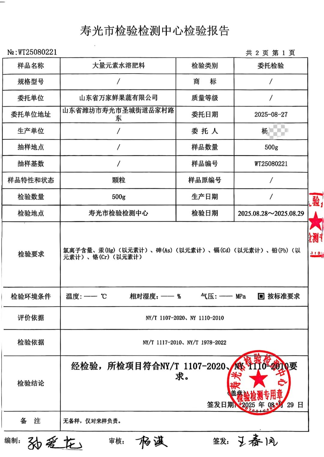 寿光市检验检测中心(由寿光苗场负责人委托)与湖北CMA认证机构(由格林凯尔委托)已分别出具检测报告,结果均显示该批次产品符合国家质量标准。